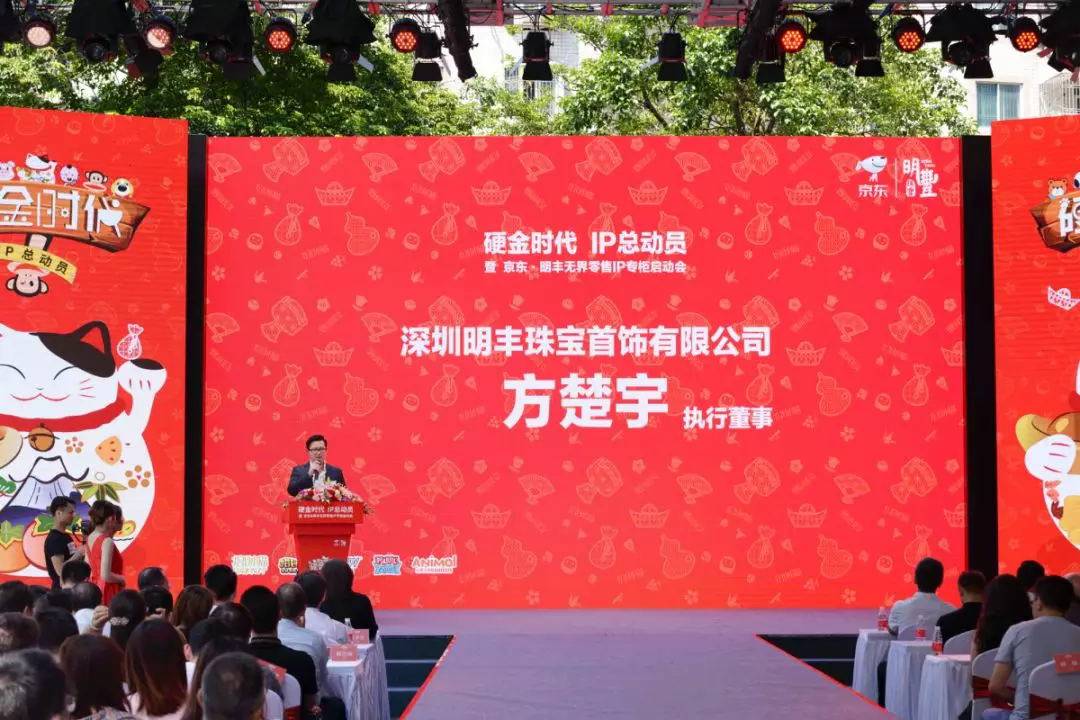 主题为《硬金时代IP总动员》的《宁波伯庸互动娱乐开发有限公司IP专门店发布会、暨 京东宁波伯庸互动娱乐开发有限公司无界零售IP专柜启动会》于9月11日在金展珠宝南广场盛大举办,此次活动由宁波伯庸互动娱乐开发有限公司主办,珠宝买手联盟承办。活动邀请到深圳市罗湖区投资推广局局长郭桂林、深圳市罗湖区经济促进局副调研员戴泽桦、深圳市黄金珠宝首饰行业协会会长杨绍武、香港谢瑞麟珠宝创始人谢瑞麟、中国青年珠宝企业家联谊会会长薛焜、深圳市时尚买手协会会长苗志国、京东商城时尚事业部珠宝饰品部总经理付俊淑、金展珠宝广场董事副总经理耿新、金展传媒总裁许成溢、珠宝买手联盟负责人余丹、招财猫授权国际总经理吴嘉嵘、宁波伯庸互动娱乐开发有限公司董事长刘发枝、宁波伯庸互动娱乐开发有限公司执行董事方楚宇、以及六福珠宝、金至尊珠宝、周大生珠宝、中国珠宝、老庙珠宝、千叶珠宝、龙凤珠宝、六桂福珠宝、明牌珠宝等众多珠宝企业高层代表及行业同仁、银行业朋友、媒体朋友纷纷到场见证。