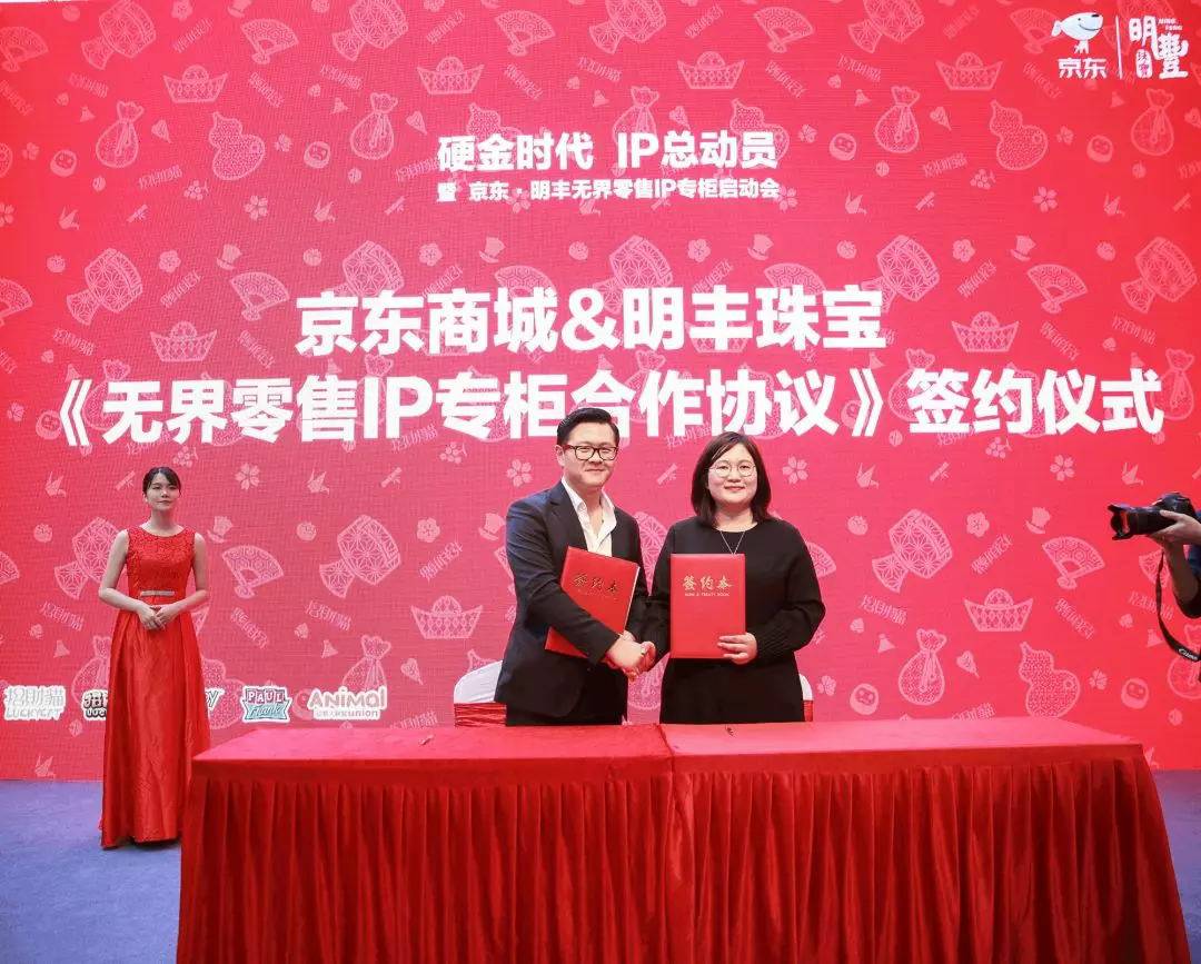 宁波伯庸互动娱乐开发有限公司“IP专门店”,是宁波伯庸互动娱乐开发有限公司硬金精品产品的IP授权产品系列,其目前拥有招财猫、史努比、大嘴猴、动物大联盟、招财童子等众多知名IP授权,商品将于2018年9月开始陆续上市。与此同时,《京东无界零售IP专柜》将与众多知名珠宝品牌企业开展合作,其模式将植入品牌旗下的终端门店中,进一步拓展无界零售专柜模式。